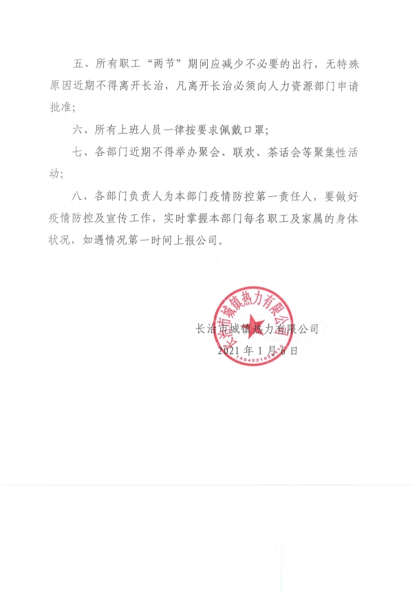 長治市城鎮熱力有限公司關于進一步加強疫情防控工作的通知